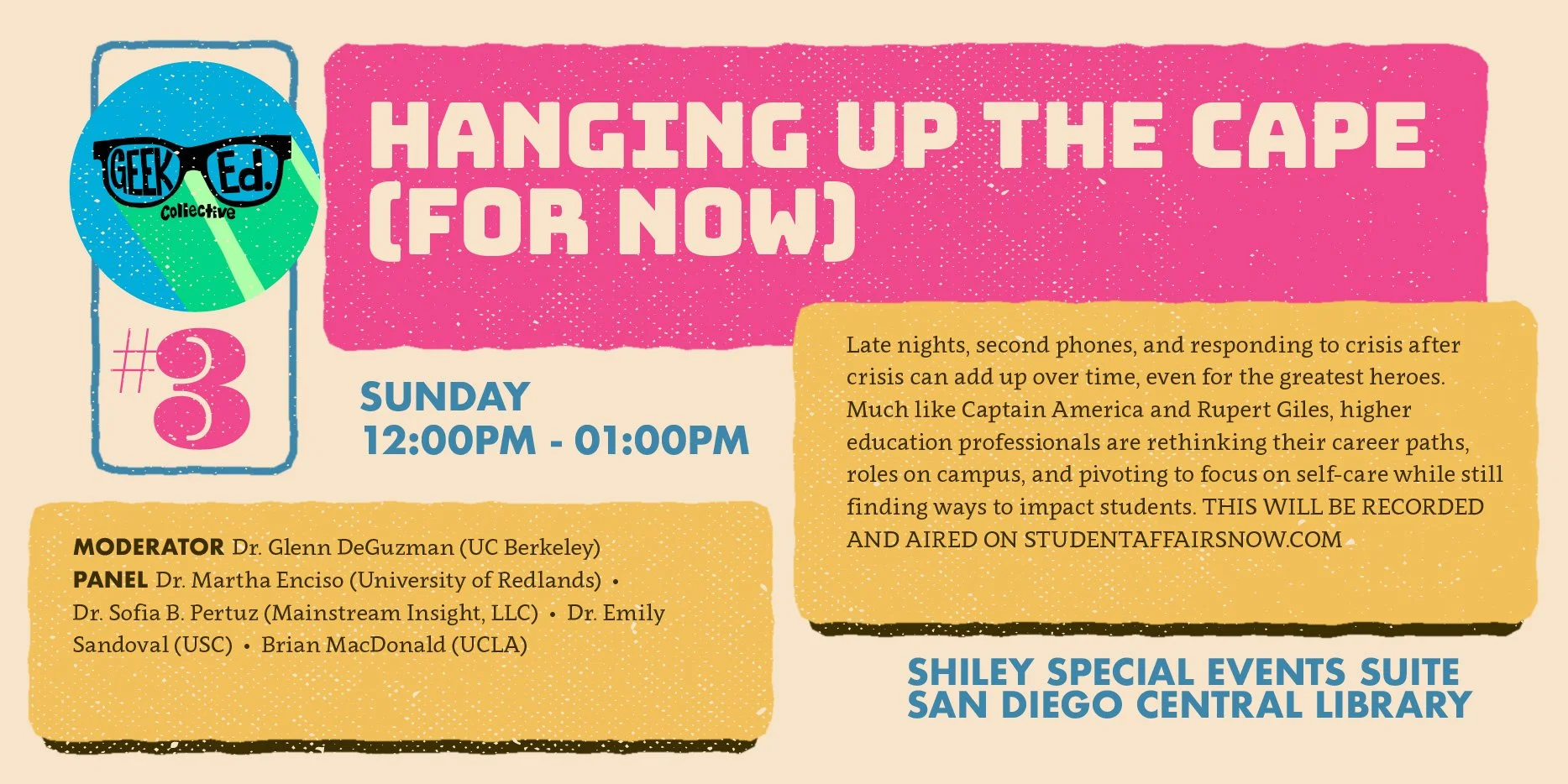Are you curious about using pop culture to gain insight into college students and your team? Interested in hosting a presentation at a Con under the GeekEd umbrella? Want to meet other HigherEd geeks?